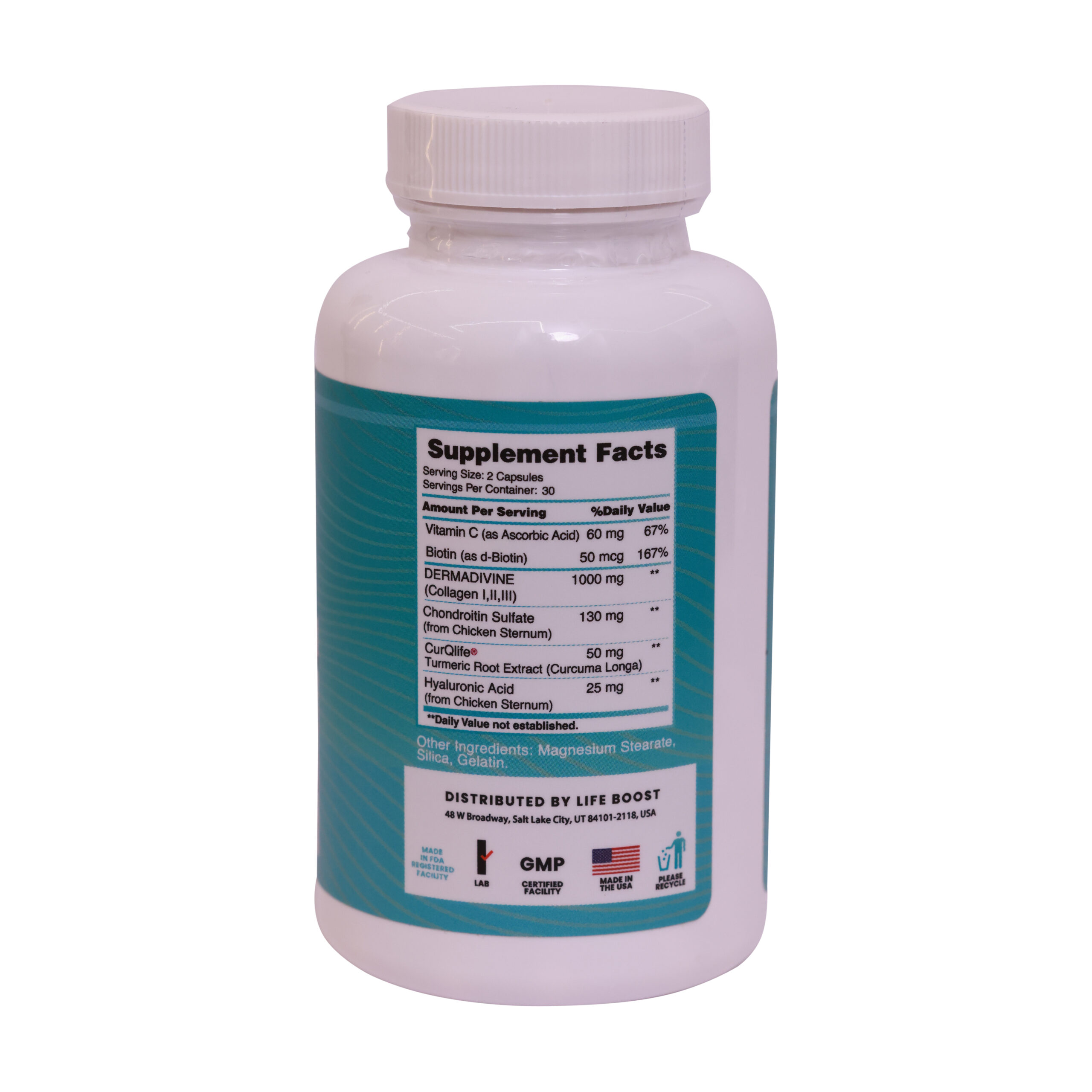 Collagen Complex is an advanced beauty + wellness formula designed to support skin elasticity and hydration, joint comfort and flexibility, and overall vitality. It blends multiple collagen types (I, II, III) with Hyaluronic Acid, Vitamin C, and Biotin—plus targeted ingredients to support joint comfort and daily wellbeing.
